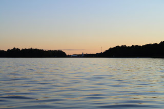 Jatkoimme melontaa jokaiseen lahteen. Uskomattomia paikkoja ja ihania mökkimaisemia. Grythålsholmenin ja Svartholmenin välissä oli kiva pieni kanava, jonka kautta pääsimme katsomaan joko aallokko olisi rahoittunut. Ei ollut. Joten käänsimme nokan kohti Kitötä, samaa reittiä jota olimme tulleet.